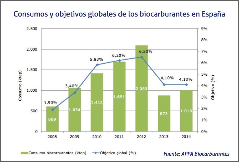 Por este motivo, desde APPA Biocarburantes proponen alcanzar un 4,6% de biocarburantes en 2015, un 6 % en 2016, un 7 % en 2017, un 7,6 % en 2018, un 8,2 % en 2019 y un 8,7 % en 2020.