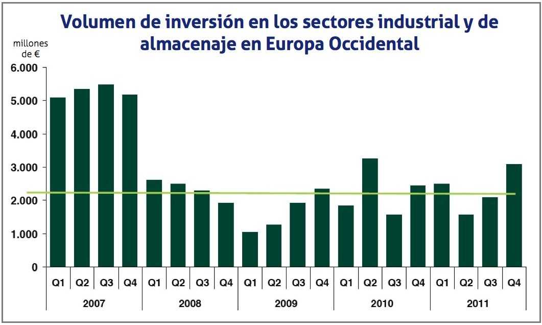La inversión en industria ligera y almacenaje se mantuvo estable en 2011. Los activos prime continuaron siendo los principales objetivos de los inversores y las rentabilidades prime se estabilizaron en 2011, por debajo del 7% en la mayoría de las ciudades de Alemania y Reino Unido y por debajo del 8% en el resto de países europeos.
