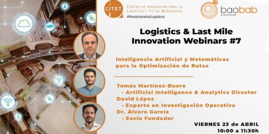 Bajo el título de 'Inteligencia Artificial y Matemáticas para la Optimización de Rutas', repasará desde la experiencia de Baobab Soluciones asuntos como en qué parte del proceso de planificación de rutas es posible obtener mejoras significativas.
