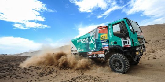 Después de todos los problemas registrados en la cuarta etapa, el trabajo de los mecánicos ha sido determinante para que Miki Biasion pudiese estar otra vez en carrera con el Iveco Trakker Evo 2 al cien por cien de sus prestaciones. Así, el piloto italiano pudo cerrar la etapa en el séptimo lugar con lo que ascendió al puesto vigésimo sexto de la general. Por su parte, con el decimocuarto puesto, el debutante René Kuipers se acomoda entre los ocho mejores, lo que también ratifica la gran actuación de los camiones Iveco en este Dakar.