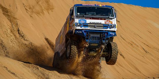 El duro trayecto por la península arábiga, que ha combinado carreteras pedregosas y poderosas dunas, ha dictado sentencia, tras doce duras etapas, a favor del equipo ruso Kamaz-Master que ha colado a sus tres representantes entre los cuatro primeros puestos de la clasificación general del Dakar 2020.