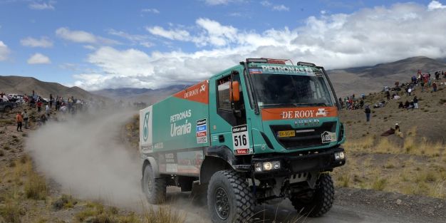 El también piloto de Kamaz, Andrey Karginov, terminó séptimo a casi diez minutos de De Rooy, por lo que el holandés de Iveco aumenta su ventaja en la clasificación general a 37 minutos y 50 segundos.