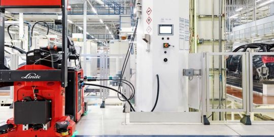 El Grupo Kion ya tiene en el mercado sus propios sistemas de pilas de combustible, tras haber desarrollado un sistema de 24 voltios para sus equipos de almacén, con la capacidad de fabricar hasta 5.000 sistemas al año en la nueva línea de producción en la planta de Hamburgo.