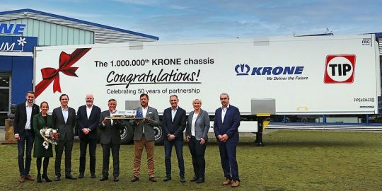 El semirremolque con el chasis número 1.000.000 ha salido recientemente de las líneas de producción de Krone. Se trata de un modelo Cool Liner fabricado en la planta alemana de Lübtheen para TIP Trailer Services.