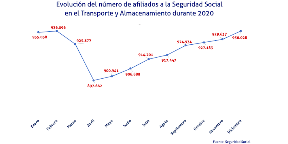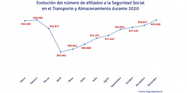 Así pues, por segmentos de actividad, el transporte terrestre suma en diciembre 596.367 afiliados a la Seguridad Social, un 0,11% más que en el undécimo mes de 2020.