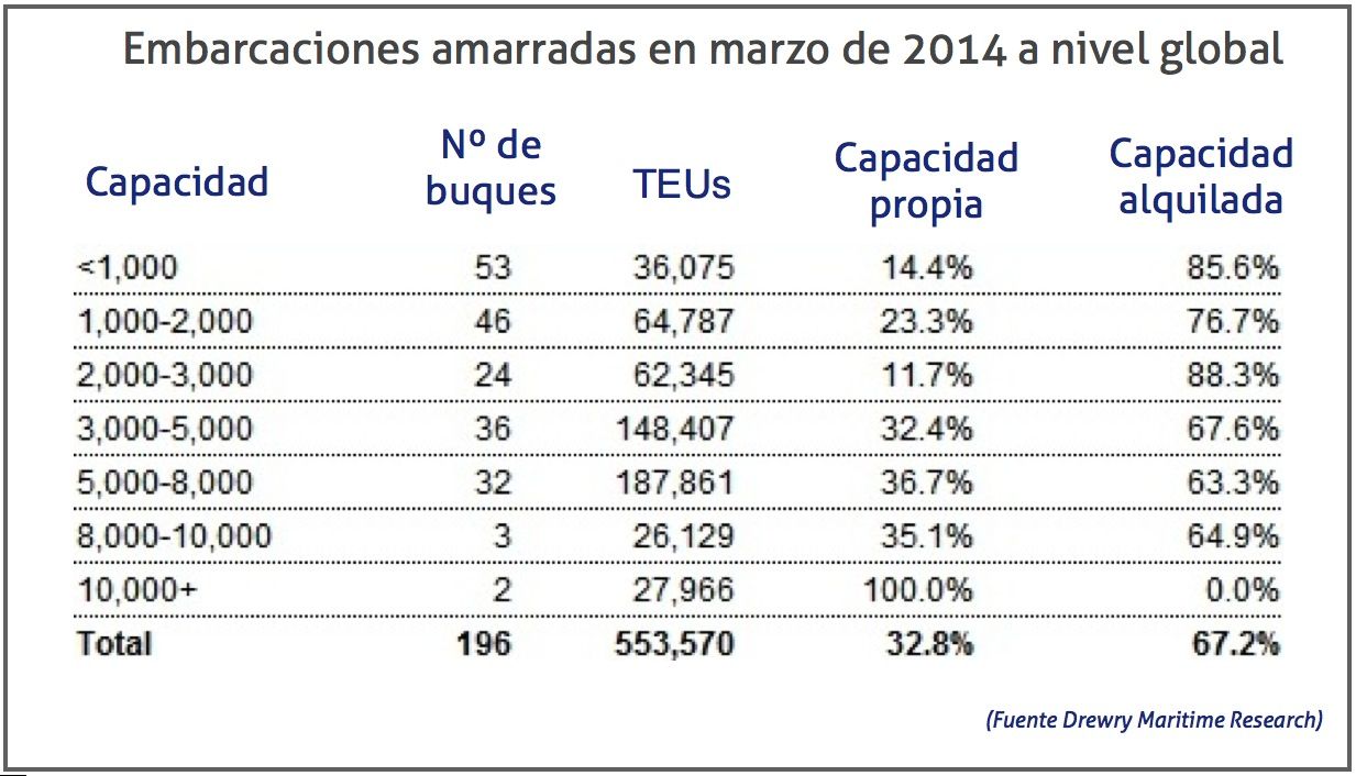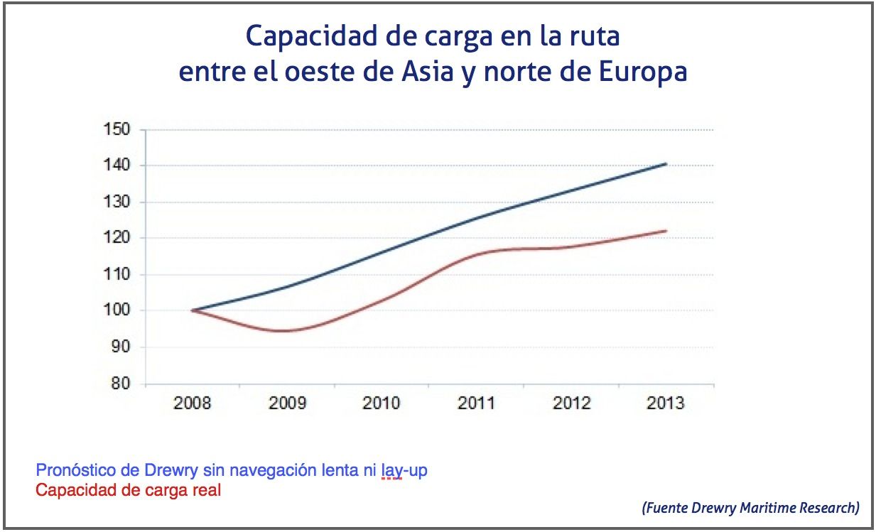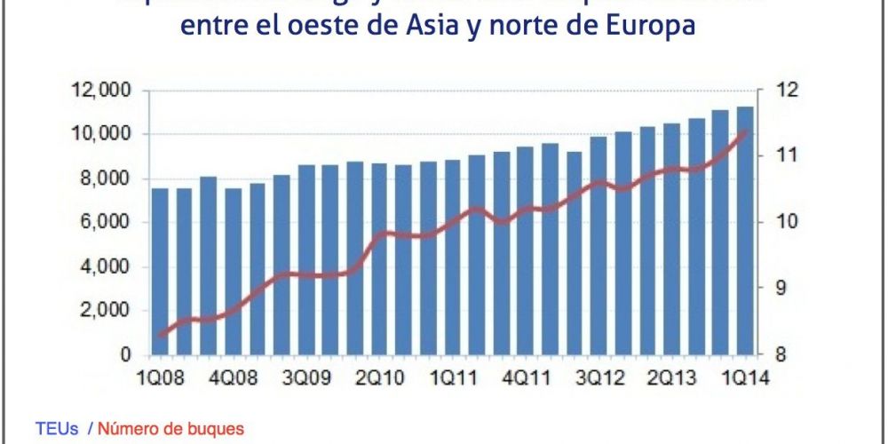 Mientras tanto, solamente en 2013, se ha reducido la oferta disponible casi 3 millones de TEUs.