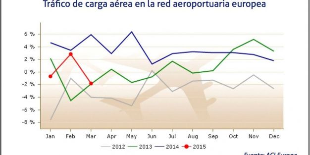 El tráfico de mercancías manipulado a través de la red aeroportuaria europea ha descendido durante el primer trimestre de 2015 un 0,4% con respecto al mismo periodo del ejercicio anterior, un descenso que se ha acentuado hasta el 1,8% en marzo con respecto al tercer mes de 2014.