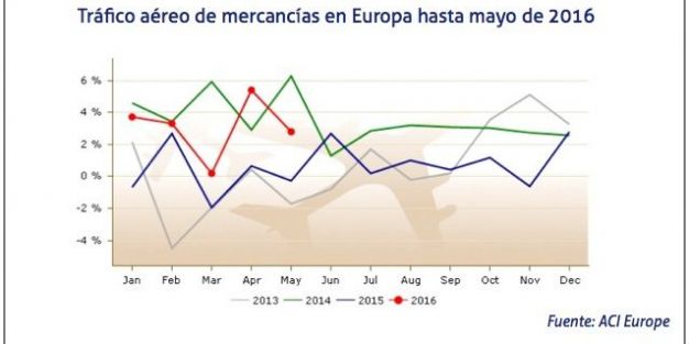 El tráfico de mercancías transportadas a través de la red aeroportuaria europea ha aumentado, en mayo de 2016, un 2,8% en relación al mismo mes del ejercicio anterior, según reporta ACI Europe.