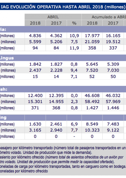 Así pues, en los tres primeros meses del presente ejercicio, el grupo IAG 1.837 millones de toneladas, un 0,2% más que en el primer trimestre de 2017, cuando totalizó 1.833 millones de toneladas.