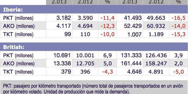 El grupo IAG ha publicado los resultados del mes de diciembre en el que se recoge el tráfico de mercancías con una TKT Carga (toneladas de carga por kilómetro transportadas) en el mes de diciembre de 478 millones de toneladas, lo que supone una caída del 5,5% respecto al mismo mes de 2012.
