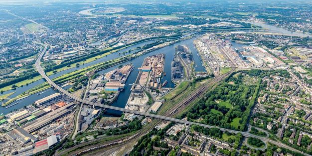 En esta terminal de contenedores se concentrarán algunos de los principales flujos fluviales, ferroviarios y por carretera que abastecen a la densa actividad industrial que se desarrolla en Alemania.