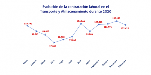Así pues, durante el pasado mes de diciembre se han registrado 122.422 contratos de trabajo nuevos en el sector del transporte y la logística, un 9,05% más que en el mismo mes de 2019, aunque un 10,77% menos que en noviembre de 2020.