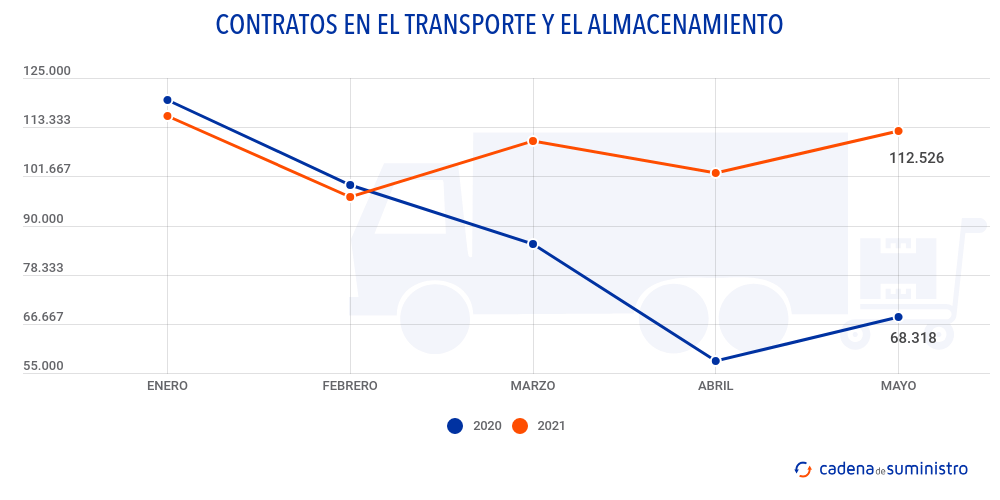 Así pues, durante el pasado mes de mayo se han registrado 112.526 contratos de trabajo nuevos en el sector del transporte y la logística, un 64,71% más que en el mismo mes de 2020, así como un 9,87% más que en abril de este mismo año.