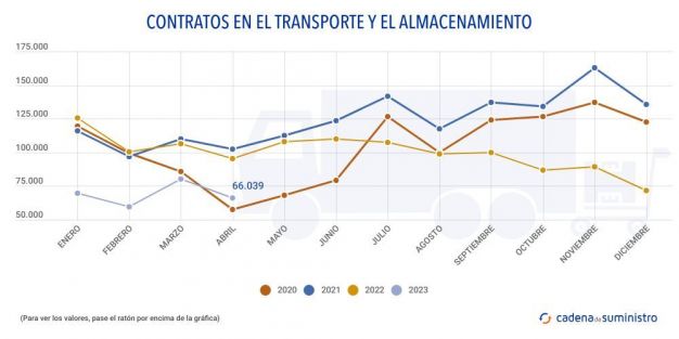 Por otro lado, en el segmento de almacenamiento y actividades anexas al transporte se ha contratado a 28.041 personas, un 10,58% menos que en marzo. De esa cifra, un total de 27.597 son contratos iniciales y 444 se han convertido en indefinidos.
