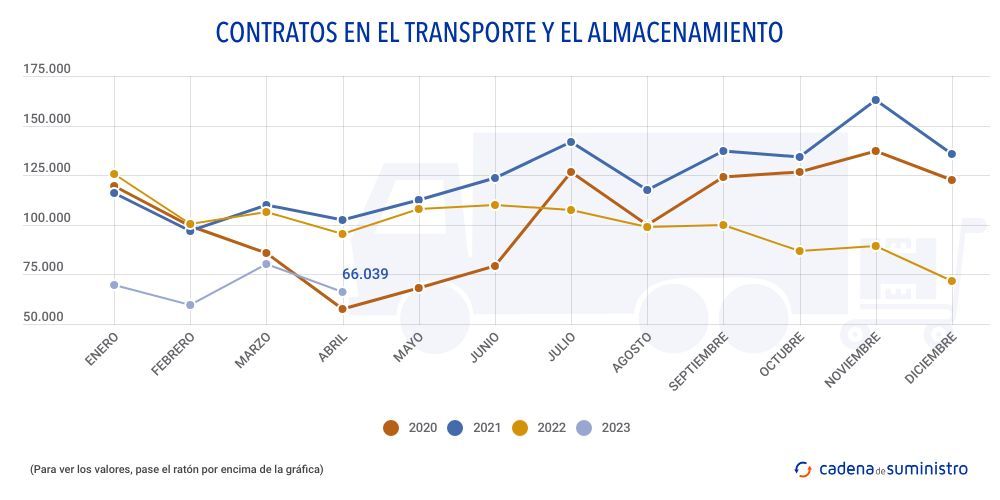 Así pues, durante el pasado mes de abril se han registrado 66.039 contratos de trabajo nuevos en el sector del transporte y la logística, un 30,89% menos que en el mismo mes de 2022, así como un 17,73% menos que en marzo de este mismo año.