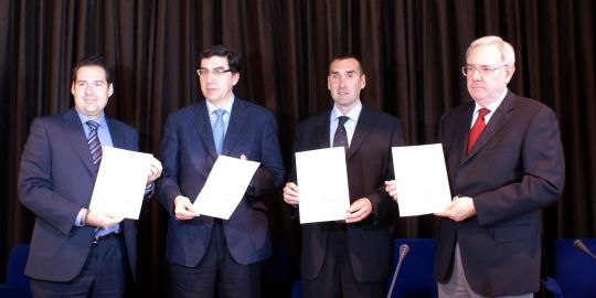 En el acto de entrega estuvieron presentes Ramiro Mejía Carvana, representante de Lloy’s Register Quality Assurance,Ignacio López-Chaves Castro, presidente Autoridad Portuaria de Vigo, Francisco Vuelta Fernández, presidente de la Corporación de Prácticos del Puerto y Ría de Vigo y Juan José Escolar Calzón capitán marítimo.