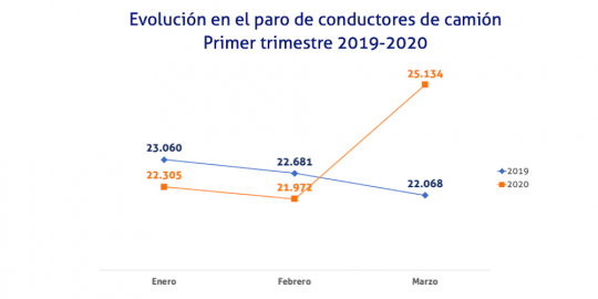 De todos ellos, un total de 24.213 conductores asalariados de camiones están en paro en el mes, un 14,57% más que en febrero, así como un 14% menos que en el mismo mes de 2019.