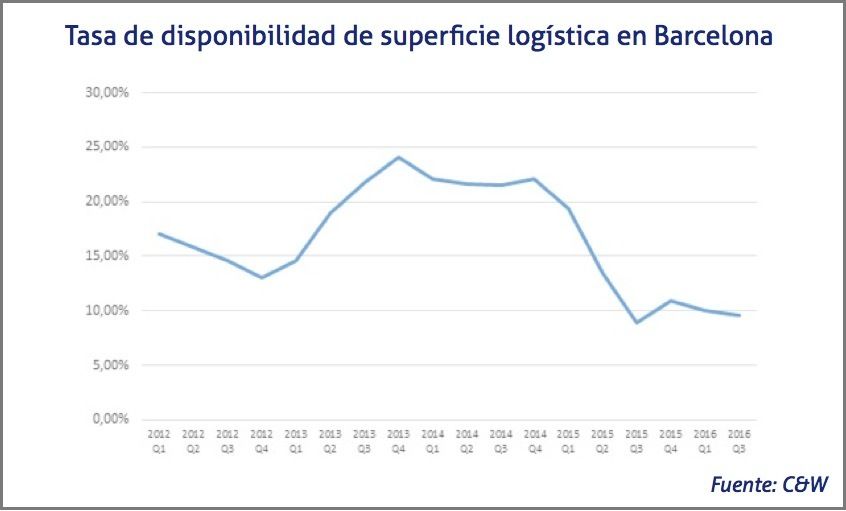 Durante el tercer trimestre del presente 2016 se ha registrado un excelente nivel de absorción logística en Barcelona, según datos de Cushman & Wakefield.