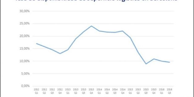 La tasa de disponibilidad global Triple A de producto logístico se sitúa por debajo del 10% a cierre del tercer trimestre, los niveles de contratación registrados durante los nueve primeros meses del año han corregido este indicador a la baja (concretamente en un 16%) en comparación con la tasa de desocupación a cierre del segundo trimestre, en el que se situaba en el 11,47%.