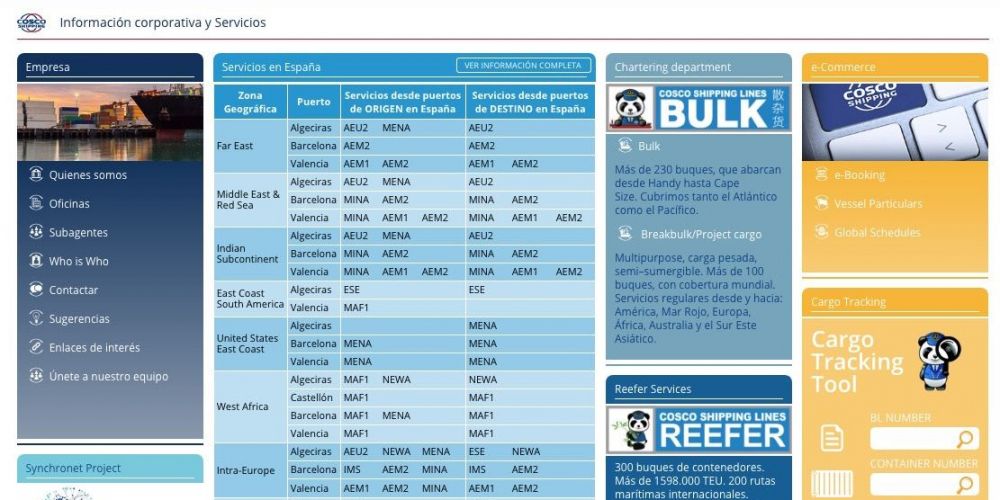 Asimismo, se proporciona información de todos sus servicios en España, con sus respectivos calendarios, que se complementa con secciones específicas para operaciones especiales de 'chartering' y servicios 'reefer'.