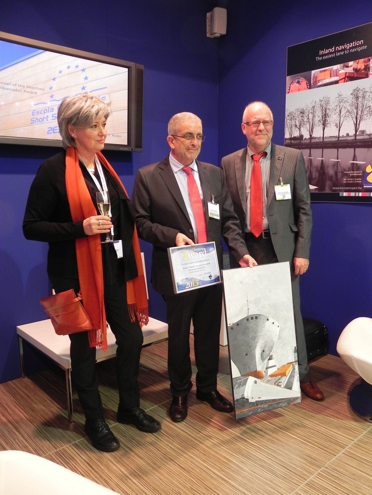 La Escola Europea de Short Sea Shipping (2E3S) recibió el primer día de la feria “Transport & Logistic” 2013 de Amberes, el pasado 15 de octubre, uno de los dos galardones: el premio "Embajador de Transporte Marítimo de Corta Distancia (TMCD)" como un vínculo duradero en la cadena co-modal de transporte.