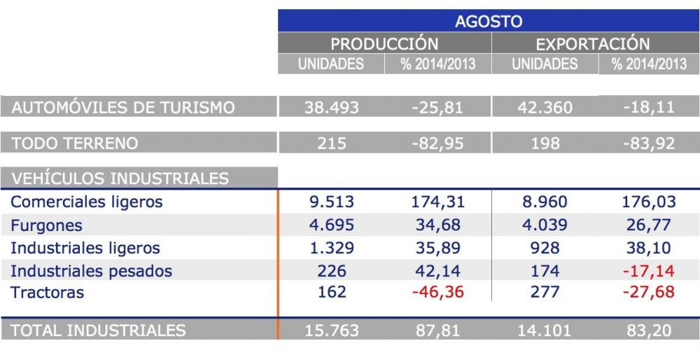 En cuanto a las exportaciones de vehículos industriales y comerciales ha experimentado un incremento del 83,2% en el mes de agosto y un total de 14.101 unidades. En el período entre enero y agosto se han superado las 267.161 unidades con un incremento del 15,8%.