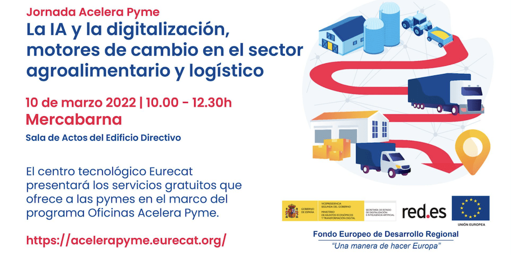 La Oficina Acelera Pyme de Eurecat y el Clúster Alimentario de Barcelona organizan el día 10 de marzo la jornada 'La IA y la digitalización, motores de cambio en el sector agroalimentario y logístico'.