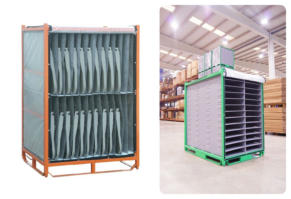 Las jaulas metálicas y los racs, al ser embalajes reutilizables, requieren a su vez de un acondicionamiento retornable, para que se complementen perfectamente.