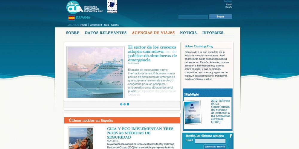 La Asociación Internacional de Líneas de Cruceros y el Consejo Europeo de Cruceros, CLIA y ECC, han lanzando su página web para España con el objetivo de facilitar información y fomentar el creciente interés por la industria de los cruceros en el mercado español.