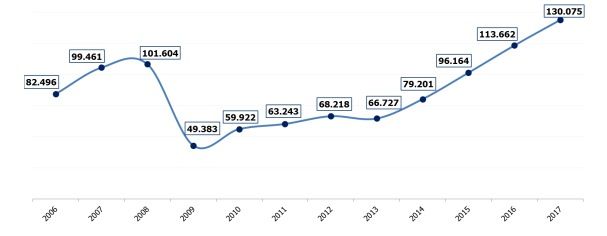 Los más de 130.000 contratos que se firmarán en los primeros meses de 2017 suponen un 14,4% más que los contratos del mismo periodo del ejercicio anterior. En comparación con los 79.021 contratos firmados en 2014 y los 96.164 de 2015 para estos sectores en el mismo periodo, el aumento en el empleo ronda el 20% anual durante los últimos cuatro ejercicios.