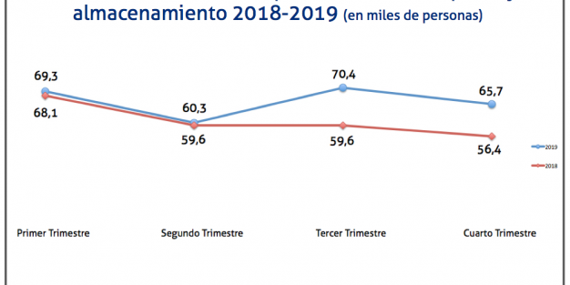 En el sector del almacenamiento y actividades anexas al transporte, se contabilizan 236.800 ocupados, un 12,22% más que en el mismo período de 2018, así como un 3,95% más que en el trimestre inmediatamente anterior.