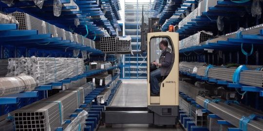 Las carretillas de carga lateral Hubtex están especialmente diseñadas para la manipulación de cargas largas en pasillos estrechos, aumentando así la capacidad útil del almacén hasta un 50%.