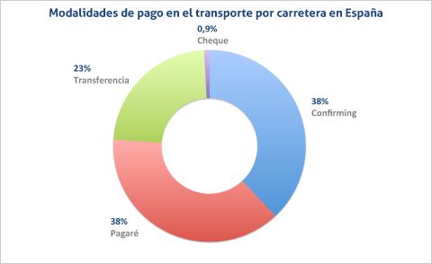 Los datos del último estudio indican que en septiembre, el medio de pago preferido por los clientes de los transportistas es el ‘confirming’ con un 38%. En idéntico porcentaje se coloca el pagaré, con otro 38%, y, a continuación, la transferencia, con un 23%, y el cheque, con un 0,9%.