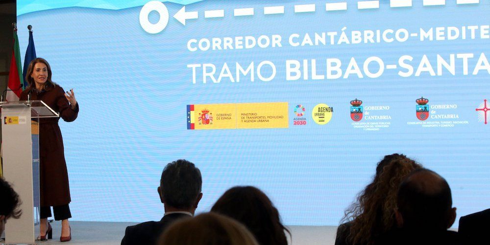 La ministra de Transportes, Movilidad y Agenda Urbana, Raquel Sánchez, ha presidido el acto de presentación del estudio de viabilidad y alternativas para la nueva conexión ferroviaria entre Santander y Bilbao, que requerirá una inversión de entre 2.500 y 3.100 millones.