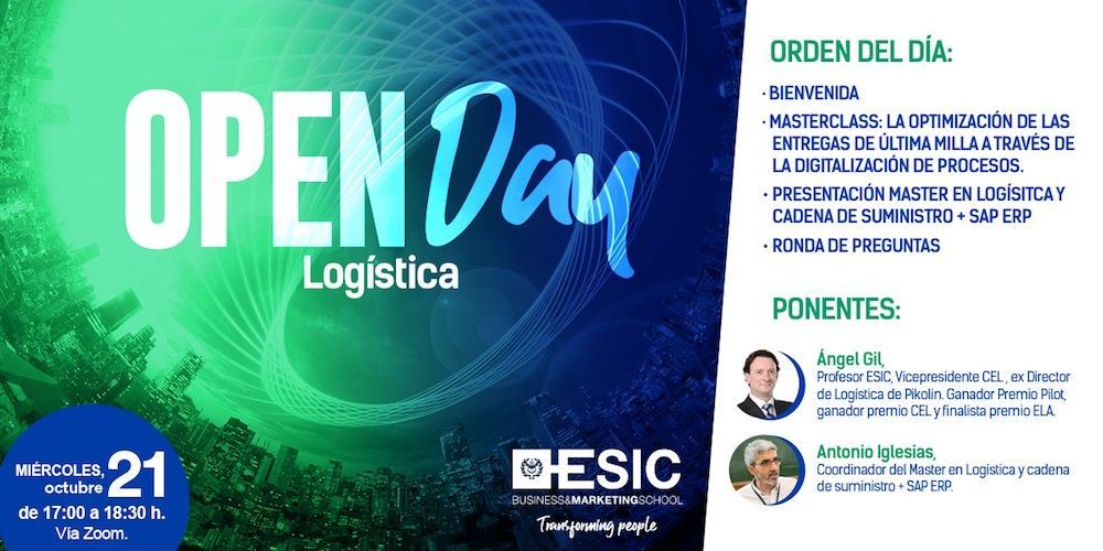 La Escuela de Marketing ESIC organiza el día 21 de octubre su 'Open Day' sobre logística, consistente en una jornada 'on-line' centrada en 'La optimización de las entregas de última milla a través de la digitalización de procesos'.