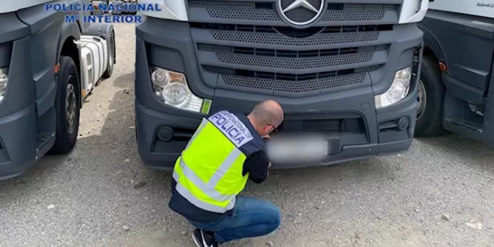 Posteriormente, a mediados de marzo, los agentes detectaron que los camiones sustraidos estaban siendo trasladados por carretera a Madrid, con placas falsas dobladas para tapar las originales búlgaras.