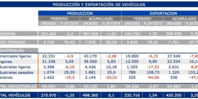 En concreto, en segundo mes del año, las plantas españolas han producido un total de 275.970 unidades, un 1,25% menos que en febrero de 2016. Este retroceso se debe principalmente a que ha habido un día laborable menos que en el mismo mes del año anterior, que fue bisiesto.