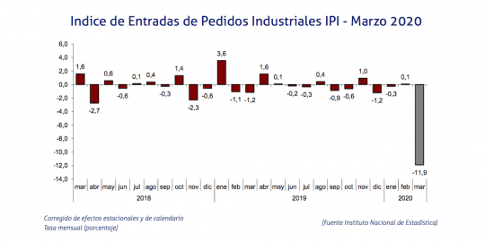 En este sentido, la producción industrial del país ha caído un -10,2% anual en marzo, aunque el registro corregido de efectos estacionales y de calendario lleva el retroceso hasta un 12,2% con relación al tercer mes del año pasado, según los últimos datos del INE.