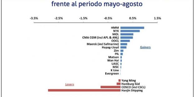 Maersk y MSC que son las que han puesto más buques en servicio desde septiembre, aumentando su capacidad en las rutas transpacíficas.