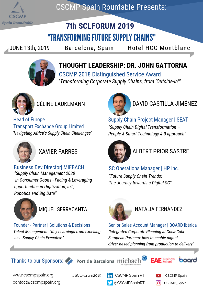 El Consejo de Profesionales especializados en la Gestión de la Cadena de Suministro, CSCMP, celebra el día 13 de junio su Conferencia Anual, el SCLForum 2019, que en esta séptima edición se presenta bajo el título 'Transformando las cadenas de suministro del futuro'.