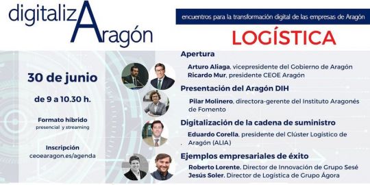 El evento, en el que se presentará el Aragón Digital Innovation Hub, incluirá una ponencia sobre la digitalización de la cadena de suministro, a cargo del presidente del Clúster Logístico de Aragón, Eduardo Corella.