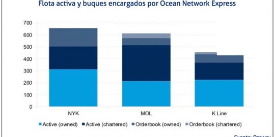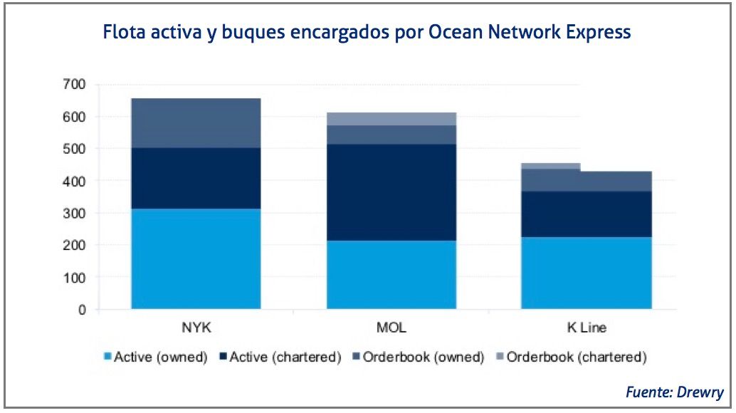 El 1 de abril de 2018 comenzará a operar Ocean Network Express, ONE, la naviera surgida de la fusión de las líneas de contenedores de NYK, MOL y K Line, cuya oficina central estará en Singapur, según recoge el último informe de Drewry.