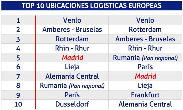 Los emplazamientos logísticos europeos más deseadosestudio que puede descargarse en este enlace (formato pdf, de 11 páginas y 1,4 Mb).