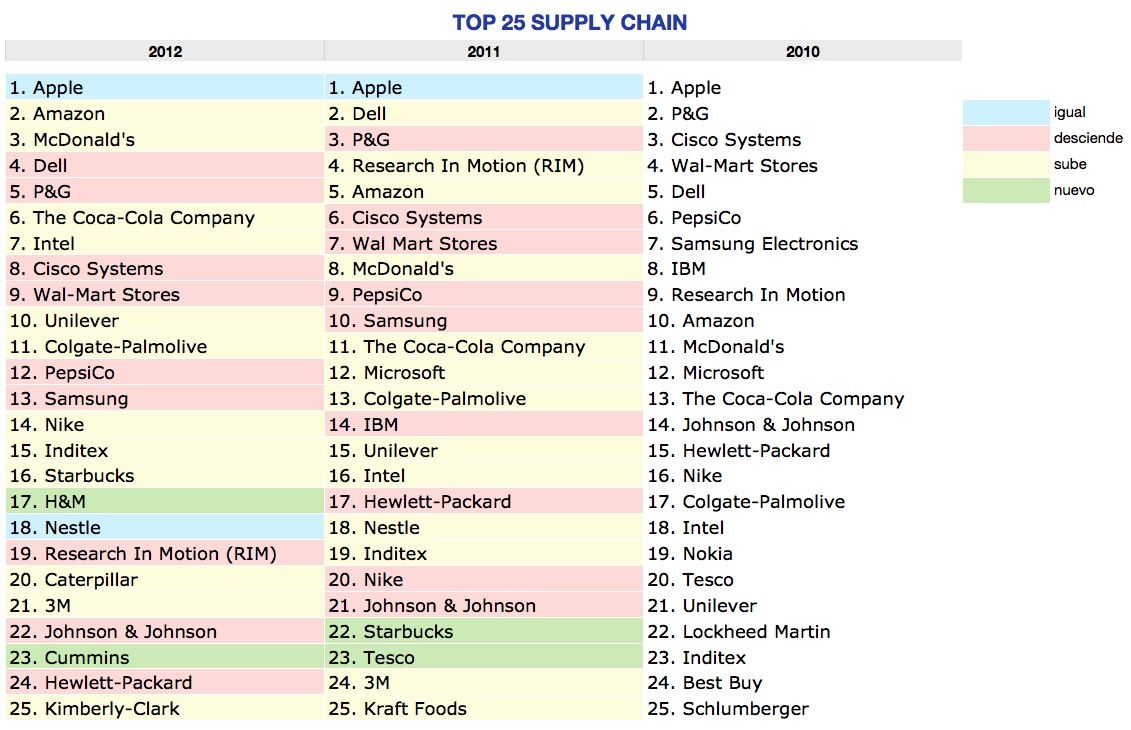 Las 25 empresas más competitivas en Supply Chainpuede descargarse en este enlace el estudio de 2012 elaborado por la consultora Gartner (disponible en formato pdf , de 28 páginas, 382 Kb).