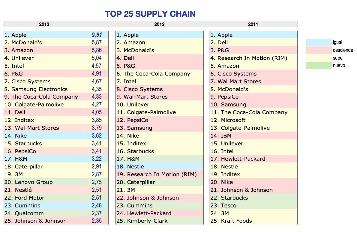 Las 25 empresas más competitivas en Supply Chainpuede descargarse en este enlace el estudio de 2013 elaborado por la consultora Gartner (disponible en formato pdf , de 28 páginas, 406 Kb).