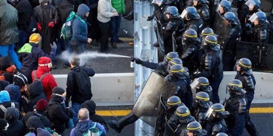 Aupados en el éxito que solo la contundente actuación de los gendarmes franceses, en colaboración con la Guardia Civil y los Mossos d' Esquadra, ha logrado parar tras casi un día, los diferentes colectivos que componen este corpus dizque revolucionario ahora piden a sus homólogos vascos que corten la circulación en la frontera guipuzcoana, en la AP-8 entre Oyarzun y Hendaya, en lo que han denominado 'Operación Caracol' a partir de las seis de la tarde de hoy, 12 de noviembre.