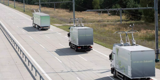 Uno de los múltiples ensayos para mover vehículos industriales con electricidad se centra en la utilización de redes eléctricas para evitar que los camiones tengan que cargar con pesadas baterías que, además, de reducir el espacio de carga, también aportan un peso extra que hay que mover con mayor cantidad de energía.