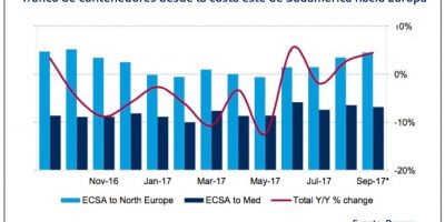 En concreto, los envíos desde países europeos han registrado aumentos en los últimos 13 meses, con incrementos de al menos un 10% en siete de ellos. Hasta septiembre de 2017, el comercio ha repuntado un 12% y está a punto de alcanzar el total anual de 2014, siendo además el primer año de crecimiento desde 2013.