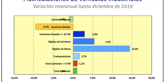 Por su parte, los camiones medios han descendido un 9,5% hasta las 3.113 matriculaciones, siendo Iveco el primero de la lista con 1.335 que suponen el 42,88% de cuota. En cuanto a los vehículos pesados de más de 16 toneladas, las matriculaciones se encuentran un 2,9% por encima de las de 2018, con 20.752 unidades.