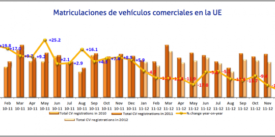 En diciembre, las matriculaciones de vehículos comerciales han mantenido la tendencia a la baja que ha prevalecido a lo largo de 2012. Con un total de 125.825 unidades, la demanda de vehículos ha experimentado un descenso de 23,4%, por lo que alcanza su nivel más bajo desde octubre de 2009.